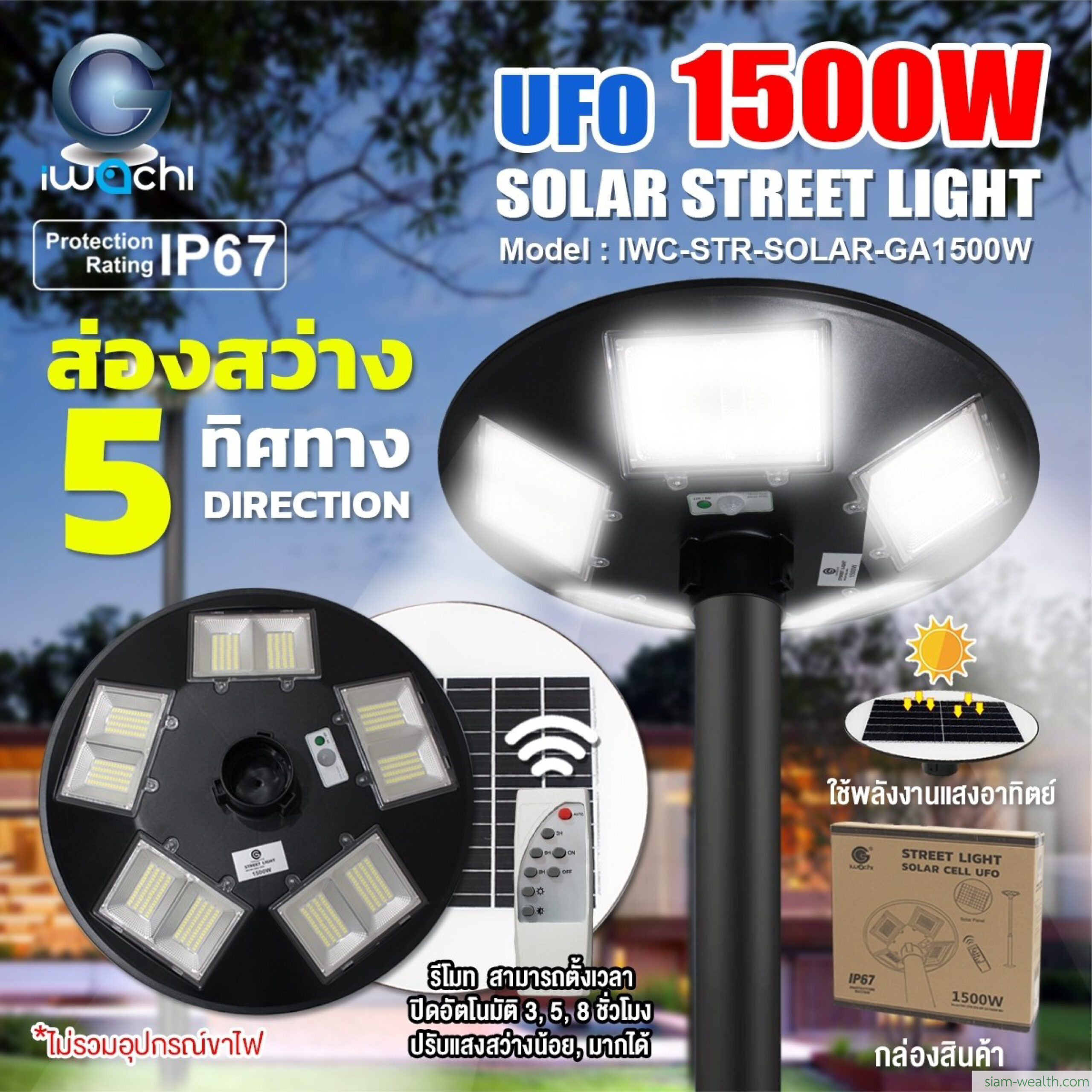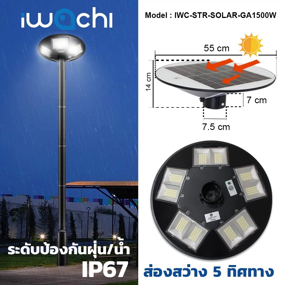 โคมไฟถนนโซล่าเซลล์ IWACHI รุ่น SOLAR-GA-1500W