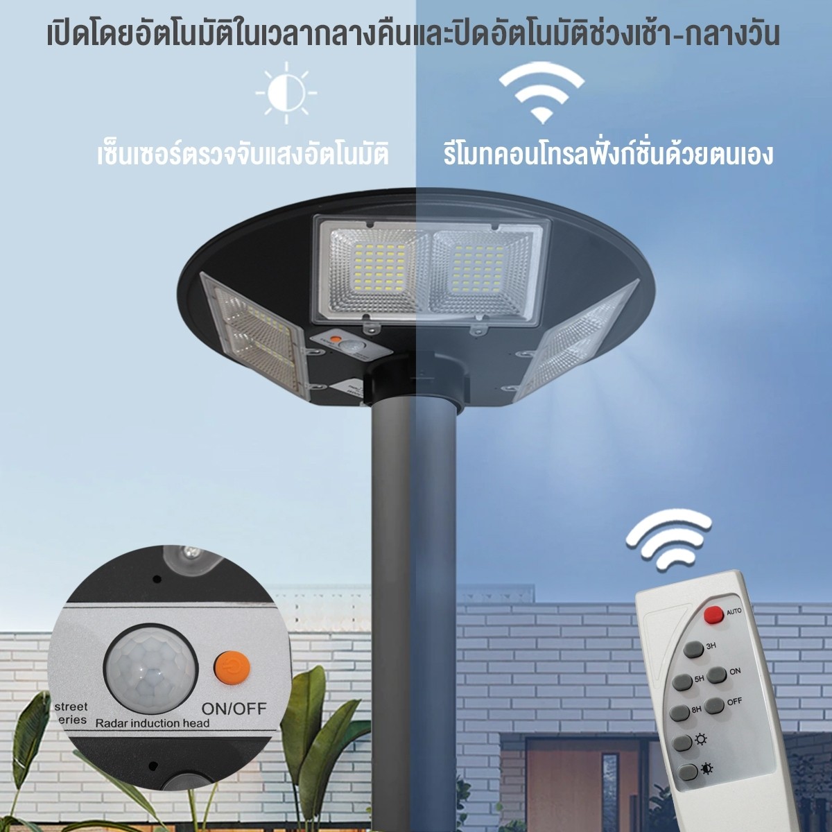 โคมไฟถนนโซล่าเซลล์ทรง UFO พร้อมแผงโซล่าเซลล์ในตัว มีขนาดให้เลือกหลายกำลังไฟ ส่องสว่างได้ดี ครอบเลนส์กระจายแสงอย่างมีประสิทธิภาพสว่างทั่วทุกพื้นที่ ทนในทุกสภาพอากาศ ติดตั้งง่าย รูปทรงสวยงาม เหมาะแก่การใช้งานเช่น ในที่กลางแจ้ง ไฟถนน ไฟทางเดินเท้า ไฟบ่อปลา ไฟรีสอร์ท เป็นต้น