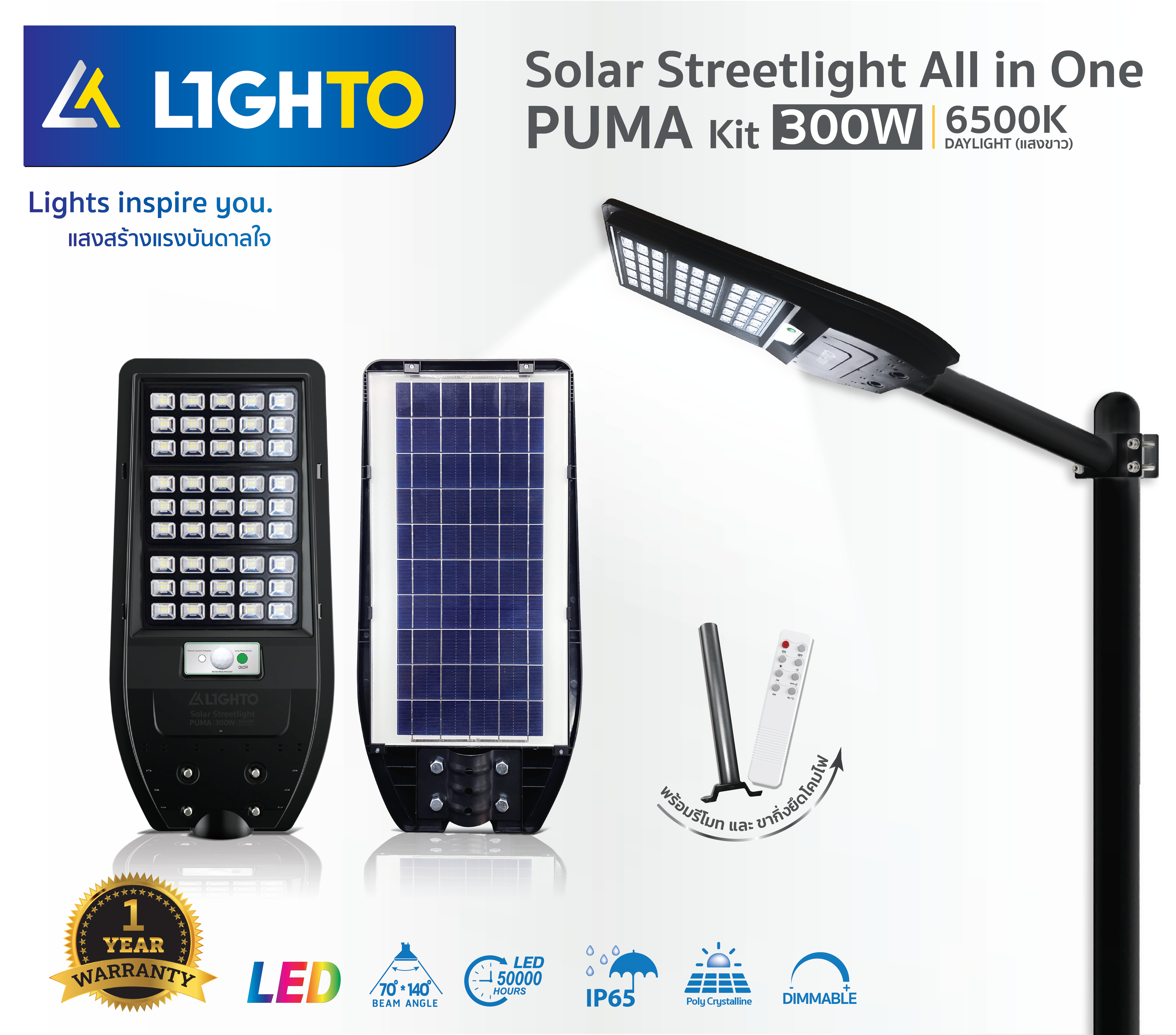 โคมไฟถนน Lighto-Solar streetlilght-PUMA-300W
